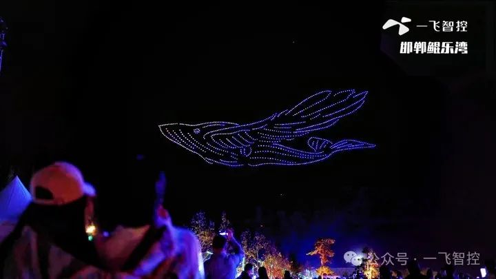 河北邯郸鲲乐湾国际旅游度假区的夜空被千架无人机点亮,绘就了“我爱你祖国”“鲸鱼”“巨人”“地球”等科技感十足的图案,每一幅画面都是一飞智控对科技与艺术极致追求的体现,为国庆夜增添了一抹独特的色彩,实现了科技感、艺术性和创意性于一体,提升了游客的沉浸式体验感和获得感。