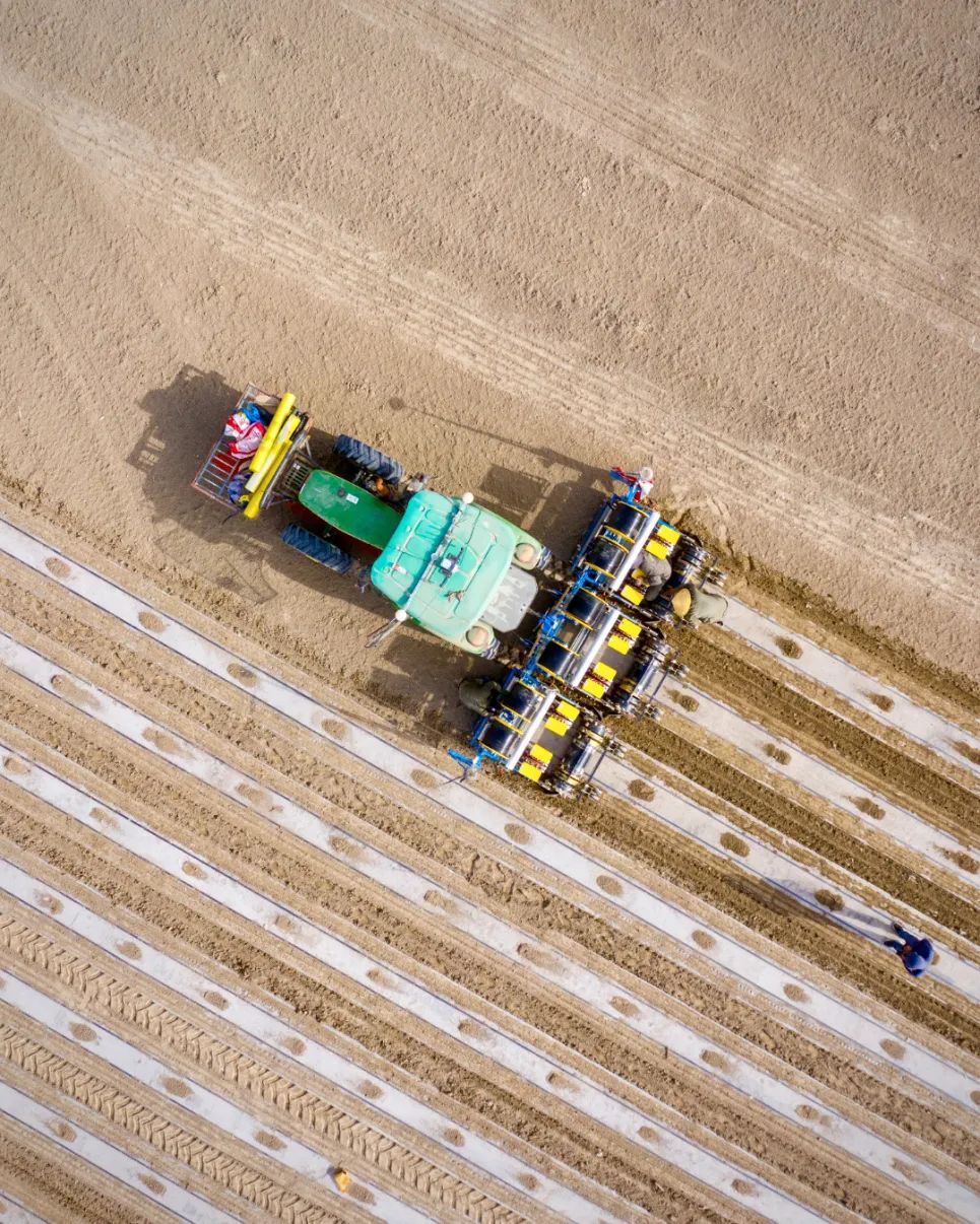搭载了自驾仪的农机正在精准覆膜播种