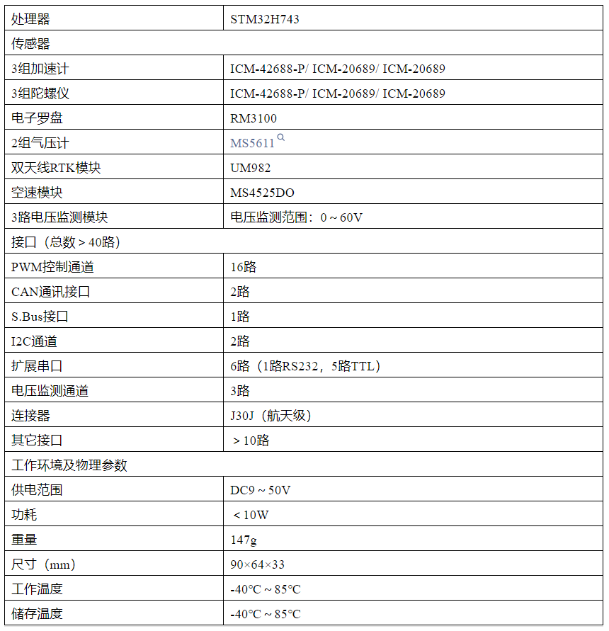 通过不断的技术突破和市场反馈,影飞科技首发重磅推出了KFC300飞行控制器。KFC300飞行控制器拥有行业优越的软硬件配置、卓越的性能设计、开放兼容与可定制化、品质+产能双重保障以及颠覆行业的定价体系。具体产品参数如下: