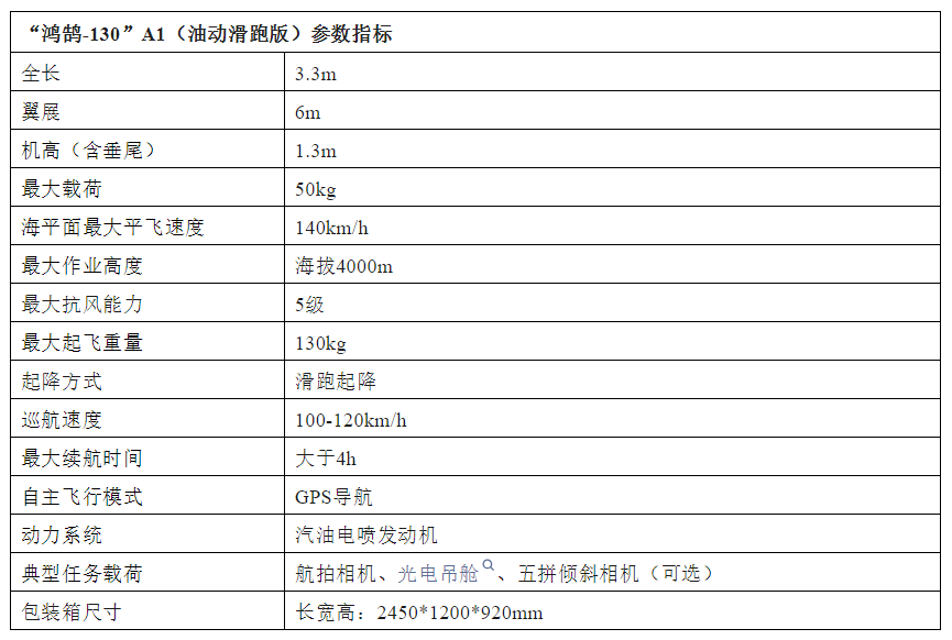 (1)“鸿鹄-130”A1(油动滑跑版)