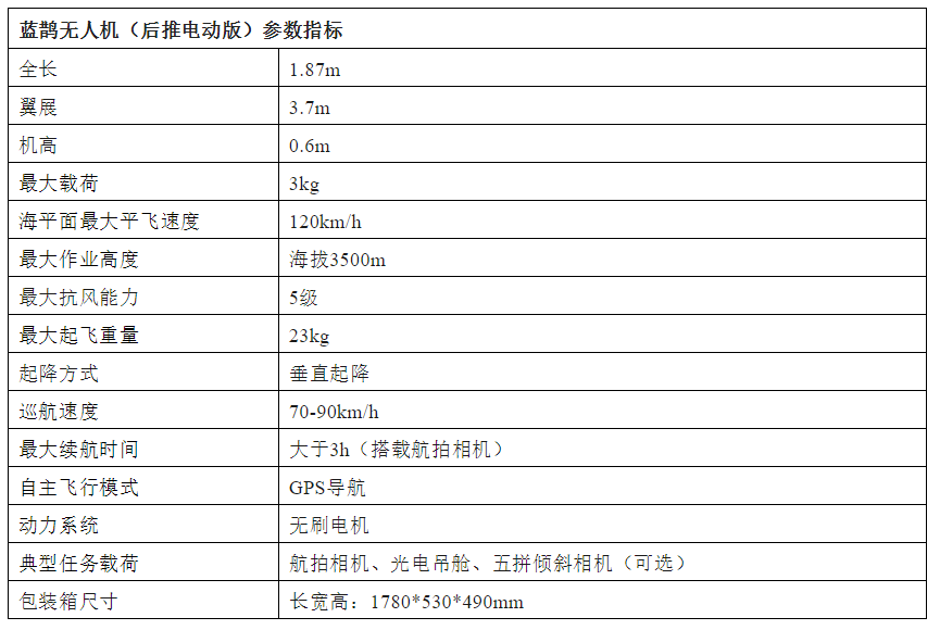 (5)蓝鹊无人机(后推电动版)