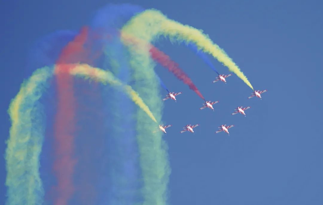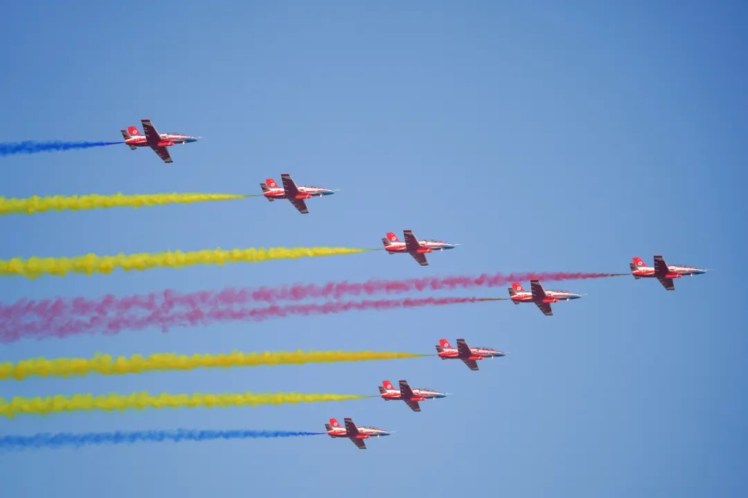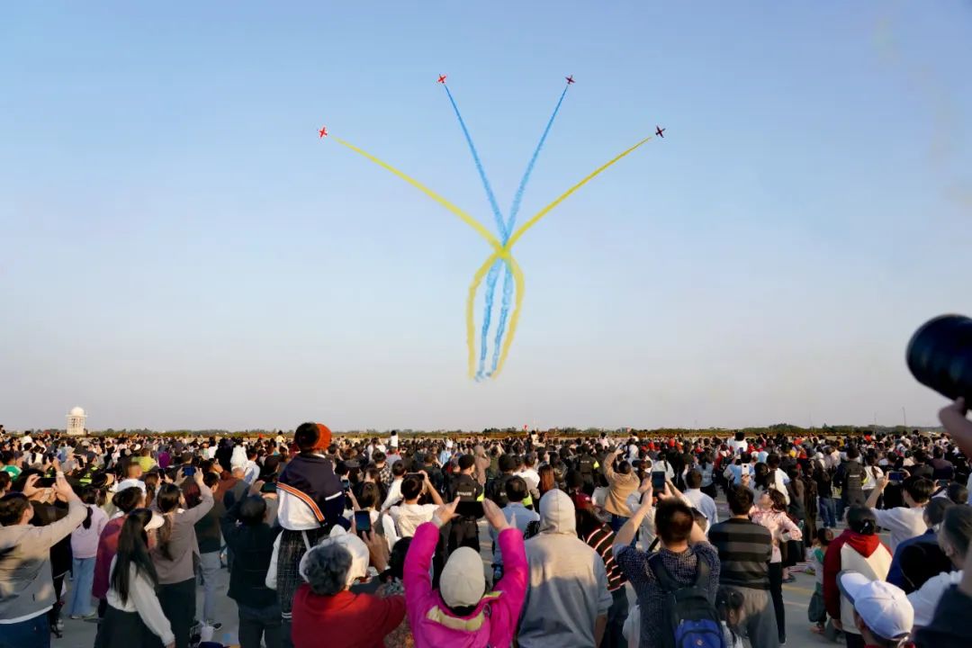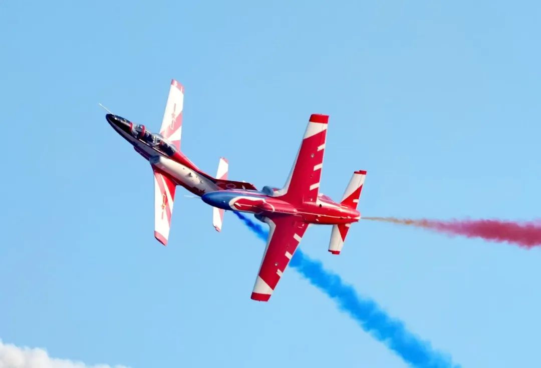▲静态展示区在飞行表演现场,中国航空工业集团研制生产的L15高级教练机进行了单机飞行展示,空军航空大学“红鹰”飞行表演队驾驶8架教8飞机以蓝天为幕,飞机作笔,绘就一幅幅精彩的多彩画卷。国产大飞机C919和ARJ21首次以双机编队进行了飞行表演。“红星”飞行表演队以3机编队形式充分展示了初教6的特技飞行性能。除了国内飞行表演队伍外,美国斯图亚特、法国守望者、俄罗斯首航等6支外籍特技飞行表演队进行了“天地竞速”“机翼行走”、飞机落皮卡、特技飞行焰火等高难度表演,为现场观众带来了一场天空特技与地面特技相结合的“速度与激情”秀。![]()