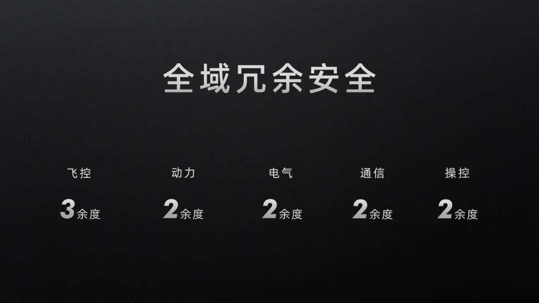 “陆地航母”遵循【全域冗余安全】设计理念,动力、飞控、电气、通信、操控等关键系统均有冗余备份,第1套系统失效后,第2套系统可实现无缝衔接,从而为用户提供极致的安全保障。