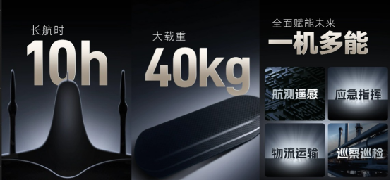 V1最大起飞重量可达150kg,最大载重可达40kg。无论是携带重型载荷,还是进行大规模物流运输,V1无人机都能轻松应对,确保任务的高效完成。