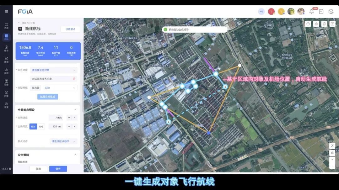 无人机航线规划是指在一定区域内,根据任务需求和飞行条件,确定无人机的起点、终点和飞行路径。合理的航线规划能够确保无人机的安全飞行,提高任务执行效率。目前航线规划时通常是由人工在地图上手动标记航点。在任务对象确定的巡逻场景中,例如巡视区域内的某条河道、某个主干道等,人工手动航线规划工作不仅费时且容易因人为失误影响巡查效果。 解决人工航点标注问题,复亚智能无人机管理平台(适配大疆机场2)推出了业务对象飞行与管理功能,通过对飞行巡检对象的分级构建并加以管理,在规划航线时,仅需在地图上框选出大致的飞行范围,系统会自动高亮并标记相关的业务对象,无需手动逐个标注航点,直接一键生成对象航线,提升了规划的便捷性和精准性。 复亚智能 创建业务对象,分级灵活管理 在复亚无人机管理平台的对象界面中,用户可以根据业务需求,分级创建不同类型的业务对象。如创建一个名为“城市管理”的对象库。 在这个“城市管理”的需求中,可能包含道路、水域、建筑、设施等需要巡视的对象。要找到这些目标,可以框选指定区域,系统会在地图上自动提取并标示出道路、水域等元素。 用户再根据巡检的需求,将自动提取的业务对象进行筛选。例如,自动提取出的“道路”元素分为高速、主要道路和二级道路等,用户可以选择其中一个类型的道路进行保存,做为后续的巡检对象。 需要对地图自动提取以外的对象进行额外标注时,如事故高发地、特定水域的关键点、重点的建设区域或工业园区等,用户可通过手动标注标记特定的点、线、面等。这种灵活添加方式可以完成更个性化、更精细化的对象管理,实现更全面的覆盖。 通过地图自动提取、按需分级筛选、手动标注补充等方式,用户可以生成一个对象丰富、层级清晰、支持按需更新管理的巡检对象列表。在日常巡检任务中,可以轻松调用已有对象,快速完成巡检规划和航线设置,使巡检任务的准备阶段更加智能和自动化,确保巡检任务规划的准确性和全面性。 框选飞行区域,自动生成航线 完成任务对象的创建后,在航线规划时,用户只需在地图上框选一个飞行范围,复亚智能无人机管理平台将自动识别并高亮显示该区域内的业务对象,并基于对象和机场的分布情况,自动生成覆盖区域相关对象的合理飞行航线。 这种基于任务对象的航线自动规划改变了传统在地图逐点设定航点的方式,自动化流程减少了对丰富技术经验的依赖,减少人工操作的负担与误差,使航线更精确地覆盖所需巡检对象。复亚智能让关注点更聚焦于“巡视对象”的航线规划方式,更贴近于行业用户的实际业务,带来更智能和精准的巡检体验。 多视角实时监控,多维度数据查看 无人机起飞后,用户可以在复亚平台的飞行界面中实时查看无人机的飞行状态和画面。平台支持双拼界面,可以同时展示地图和视频视图,用户能更好地观察无人机的巡检进度和环境情况。 飞行任务完成后,用户可以在平台上查看完整的巡检数据和生成的报告。报告内容包括航线概览、巡检对象覆盖情况、图像与视频数据、识别到的异常事件等,支持多维度的数据分析和保存管理,便于后续分析和查询。 复亚智能无人机管理平台的业务对象管理及飞行功能通过巡视对象智能分级管理、航线自动生成、实时监控与全面数据管理,为用户提供了高效的低空巡查方案,大大提升无人机巡检的覆盖精准性与低空巡查系统的自动化水平,助力智慧城市、公共安全、交通管理、环境治理等低空经济应用的智慧化发展。