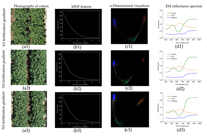 此研究采用搭载长光禹辰公司自主研发的MS600 Pro V1多光谱相机的多旋翼无人机,获取了棉花多生育期的多光谱图像,利用特征筛选对SPAD敏感特征进行了提取,并采用回归方法和机器学习方法进行模型构建,最终获得了泛化性能较好的棉花的SPAD反演模型。
