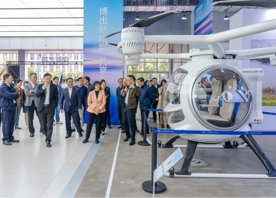 ▲零重力飞机工业亮相虹桥品汇“新质生产力·未来出行展”,上海市人大常委会副主任宗明一行参观