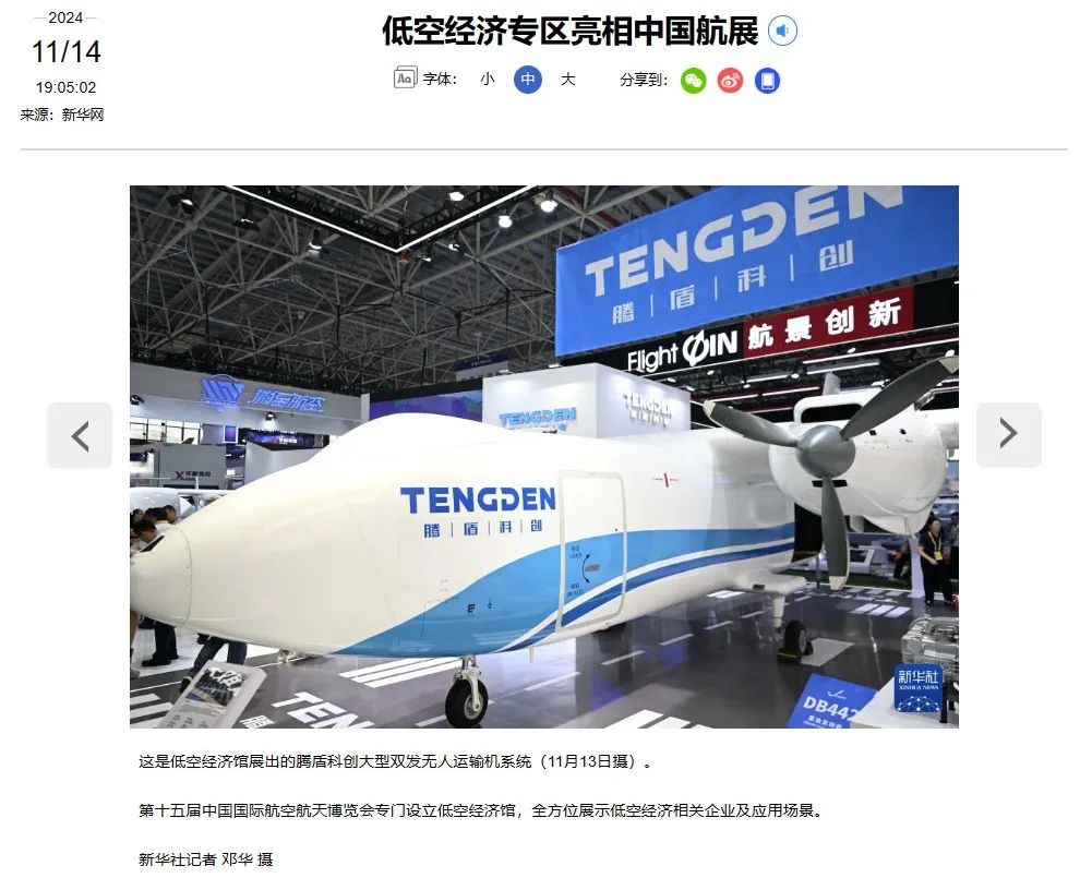 首次展出的腾盾大型无人运输机,作为国内目前首屈一指已完成飞行验证、具备成熟运营能力的2吨级无人运输机,成为低空经济馆的“镇馆之宝”之一。
