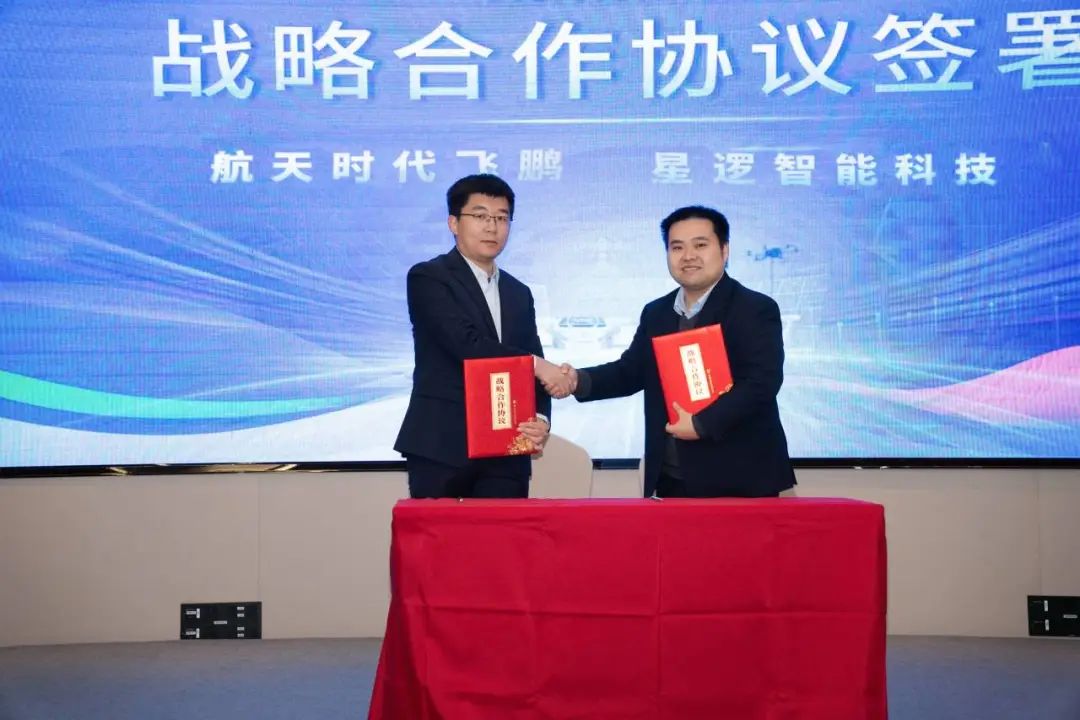 仪式上,星逻智能COO刘宇涛还与航天时代飞鹏有限公司副总经理毕培信签署战略合作协议,意图通过优势互补、资源共享的方式与企业建立深厚的战略合作伙伴关系,促进彼此共创共赢,服务苏州AI+低空产业振翅高飞。
