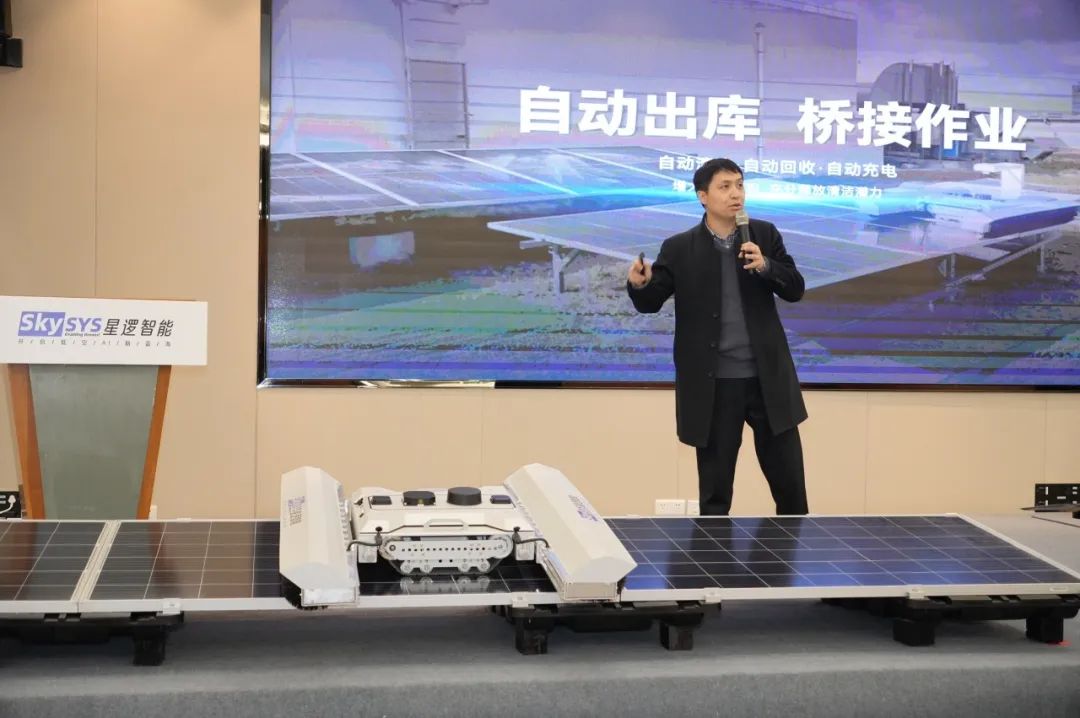 王海滨现场发布了星逻Lantern光伏机器人全新版本,进一步释放低空新能源运维模式的行业应用潜力。星逻智能技术团队向在场嘉宾演示操作了星逻Lantern光伏机器人的工作流程,充分展示了星逻智能的产品实力。