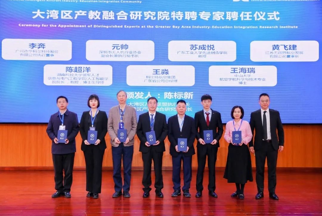 此外,全国智能飞行器产教融合共同体共同理事长、广东科技学院副校长孙建为江苏无国界航空发展有限公司、深圳市中科联信科技有限公司、广东科学技术职业学院和清远市清新区职业技术学校、广州华商职业学院、河北东方学院、四川长虹佳华信息产品有限责任公司、东莞市改革发展研究院、广东云间科技有限公司等8家新成员授予牌匾。