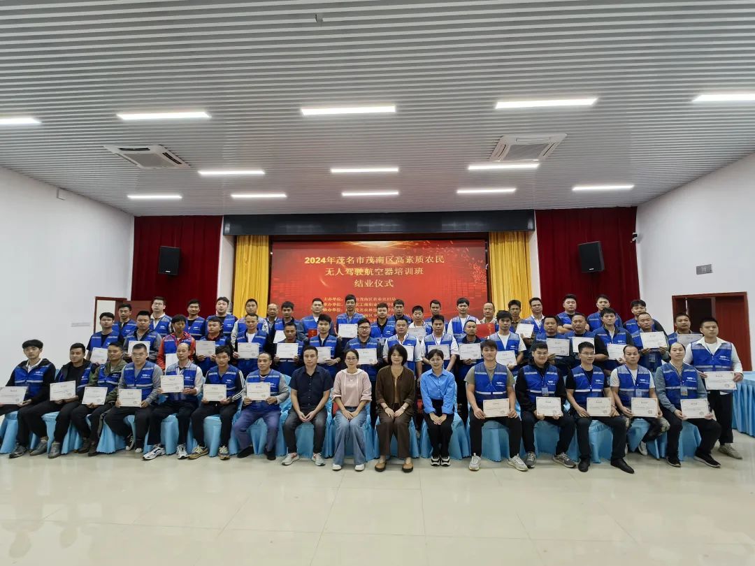 全方位培育新时代高素质农民人才队伍是贯彻落实乡村振兴战略的一项重要工作,也是全面提升高素质农民人才综合素质、壮大乡村人才振兴队伍的重要举措。近日,2024年茂名市茂南区高素质农民培训班”——植保无人机技能操作培训圆满结业。本次培训茂名市人大常委会副主任陈凡晓,茂名市委教育工委、茂名市教育局、茂名市农业农村局、茂名市退役军人事务局、茂名市茂南区委区政府、深圳市鼎峰无限电子有限公司、茂南中科云粤西产业园管理中心有关领导,学院党政领导班子成员、各部门负责人、部分师生代表参加活动。活动由学院党委副书记、院长董艳清主持。共50余名学员参加培训。