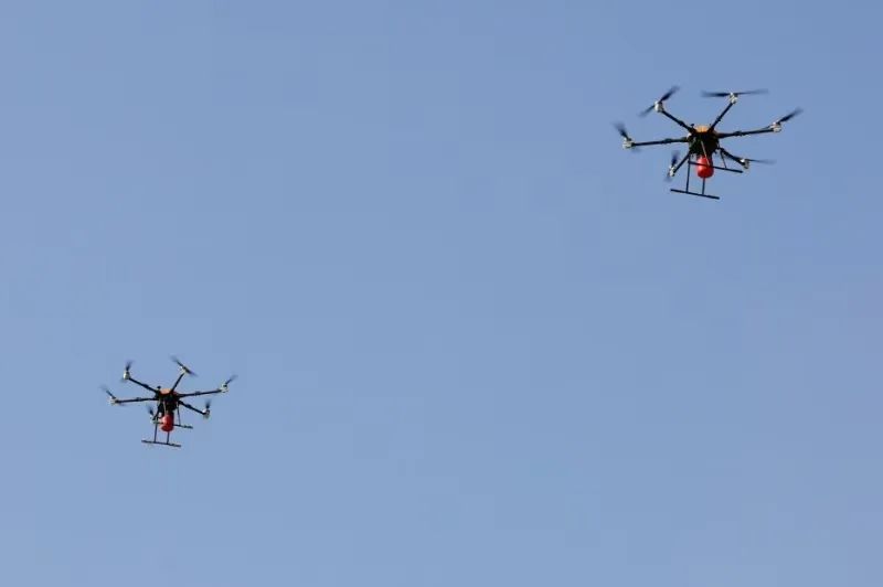 在这场演练中,地面消防队伍冲锋在前,他们手持灭火工具,展开地面灭火。而在空中,天翼科技集团救援队携带“大黄蜂”森林灭火无人机飞行在火场上空,进行空中监测及投弹灭火,为地面队伍提供了准确而及时的火情信息,同时开展灭火作业,为控制火势发挥了重要作用。