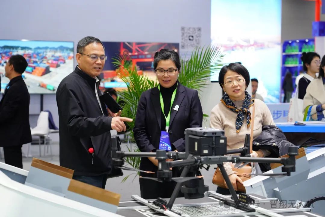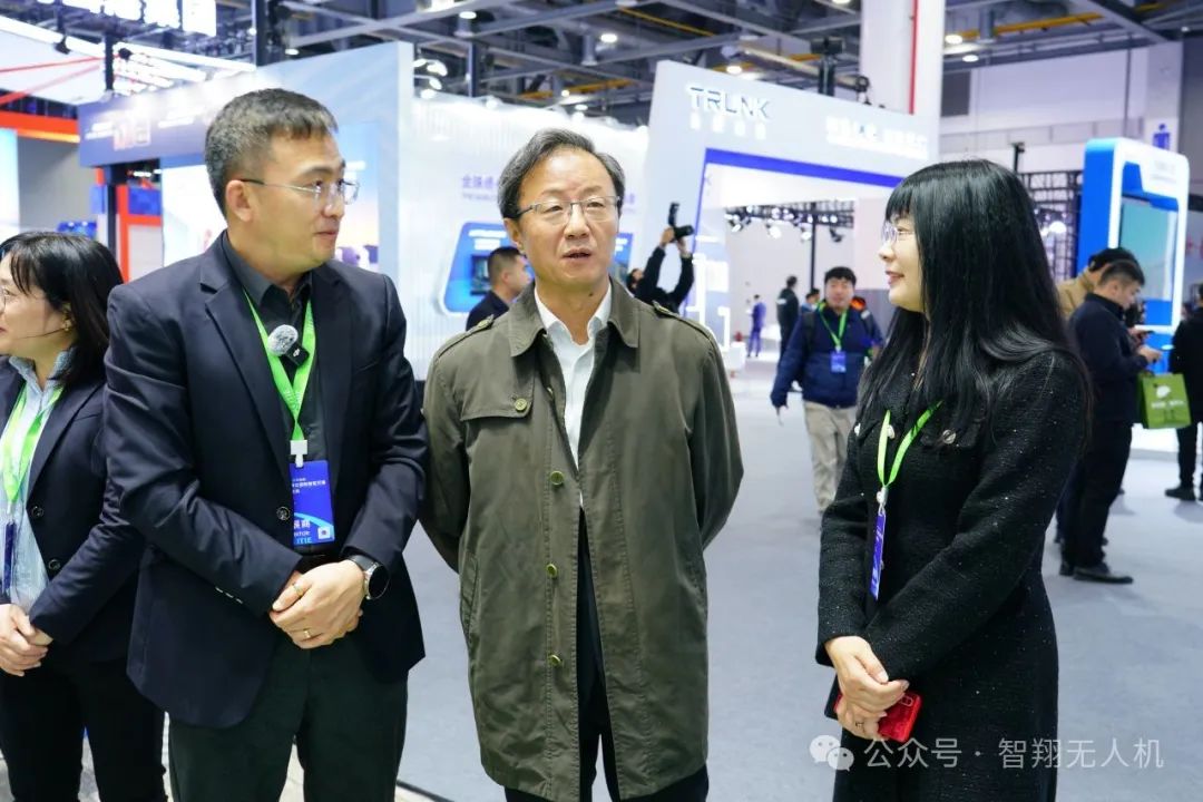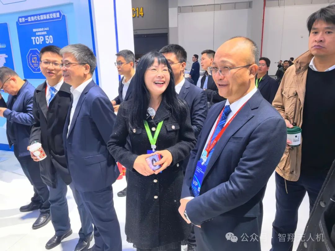 12月5日,交博会启动仪式后,交通运输部副部长李扬、浙江省副省长柯吉欣、浙江省交通运输厅党组书记厅长蔡洪、党组副书记副厅长邵宏、副厅长杨晓光、航空处处长徐建伟,杭州市交通运输局局长夏积亮、副局长杜岳芳等领导走访低空经济馆,为低空企业的发展助力。智翔航空董事长程苏仙女士向柯副省长汇报了公司成立八年多来,立足交通,在“低空+人才培养”“低空+场景应用”“低空+技术开发与服务”等方面做出的努力与取得的成果,得到了柯副省长的高度认可。