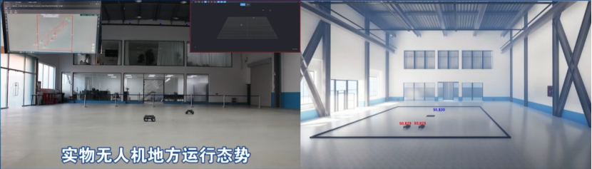 方案通过仿真+虚实结合的手段,解决了如何将集群算法更加安全的迁移至真机实飞的问题。其中的虚实交互系统以多维、多空间、多尺度模型将物理实体以数字化呈现,以多源异构的数据为纽带,将物理实体与虚拟空间运行实时连接、实时映射、实时刷新, 以保证一致性。最终目的是借助虚拟空间的仿真、可视化等手段,基于数字孪生技术进一步提升物理实体验证能力。