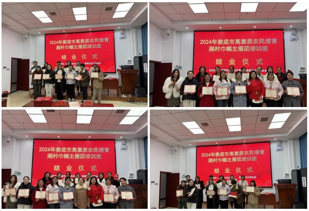 在省农业农村厅和省妇联的悉心指导下,由娄底市农业农村局、娄底市妇联主办,中共娄底市委党校、湖南精飞智能科技有限公司承办,并得到今日女报等媒体提供培训师资等支持的“2024年高素质农民培育娄底市湘村巾帼主播团培训班”,于12月15日圆满结业。