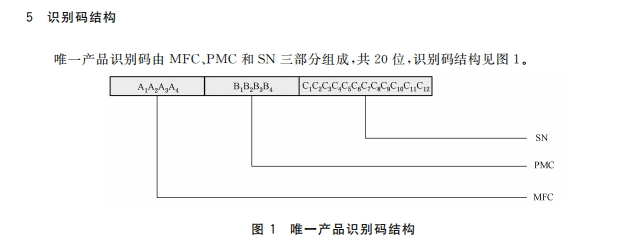 该标准规定了唯一产品识别码的编码结构、识别方式及相关要求。唯一产品识别码由MFC(制造商代码)、PMC(产品型号代码)和SN(序列号)三部分组成,可通过机身铭牌、条码、二维码、电子标签或无线电广播的方式识别。