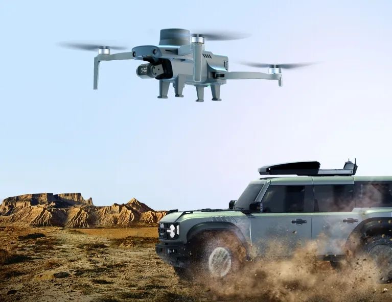 移动精准起降:用户仅需一键操作,无人机就能够在汽车行驶过程中自动稳定起飞和厘米级精准降落,极大扩展了使用场景。