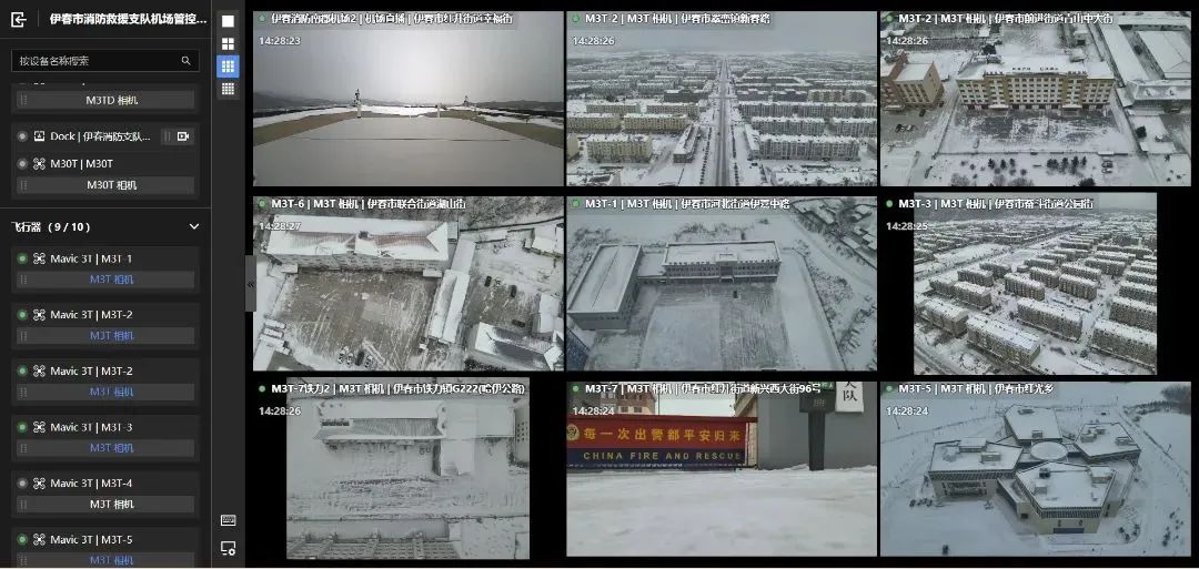 为了高效管理这些无人机和机场,伊春市消防救援支队将辖区的无人机和机场接入大疆司空 2 云平台,实现对无人机的统一管理与调度指挥。在司空 2 后台,指挥中心可直接通过多路直播页面,获取所有无人机的作业画面,从而实现对设备的全面管理。