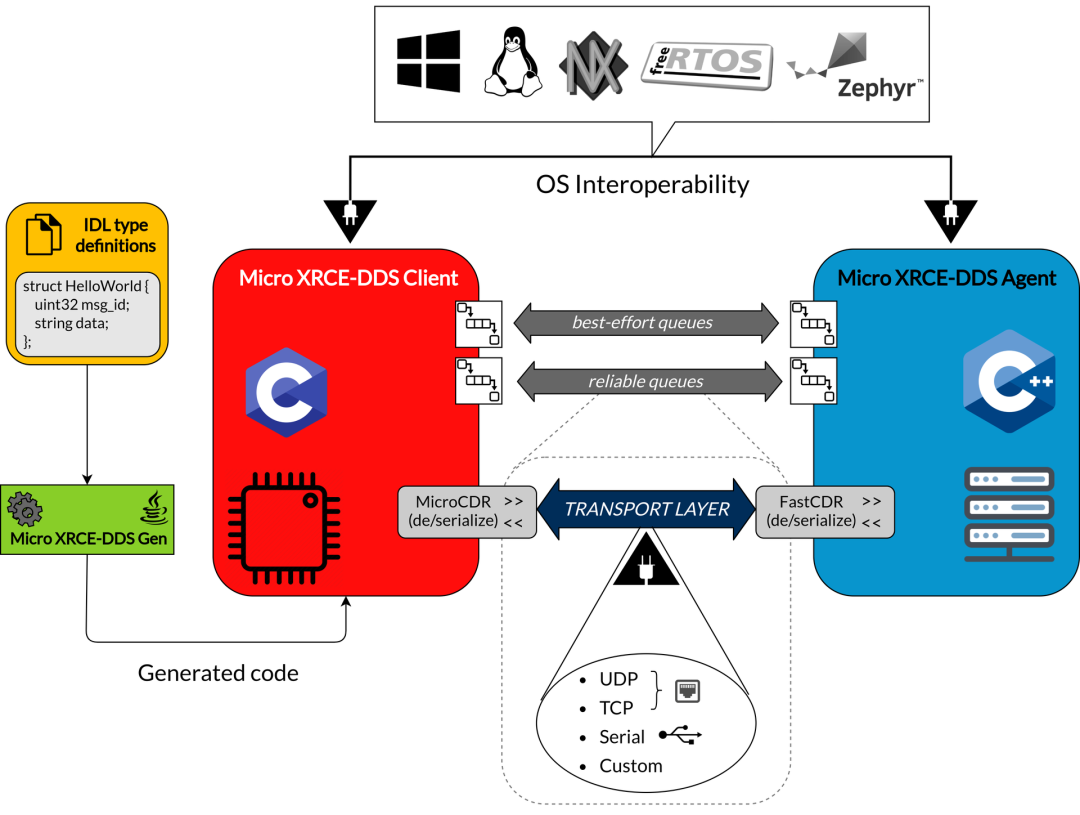 XRCE-DDS(eXtremely Resource Constrained Environment DDS)是 DDS(Data Distribution Service)的轻量化实现,专为资源受限的嵌入式系统设计,能够提供高效的点对点和分布式通信能力。