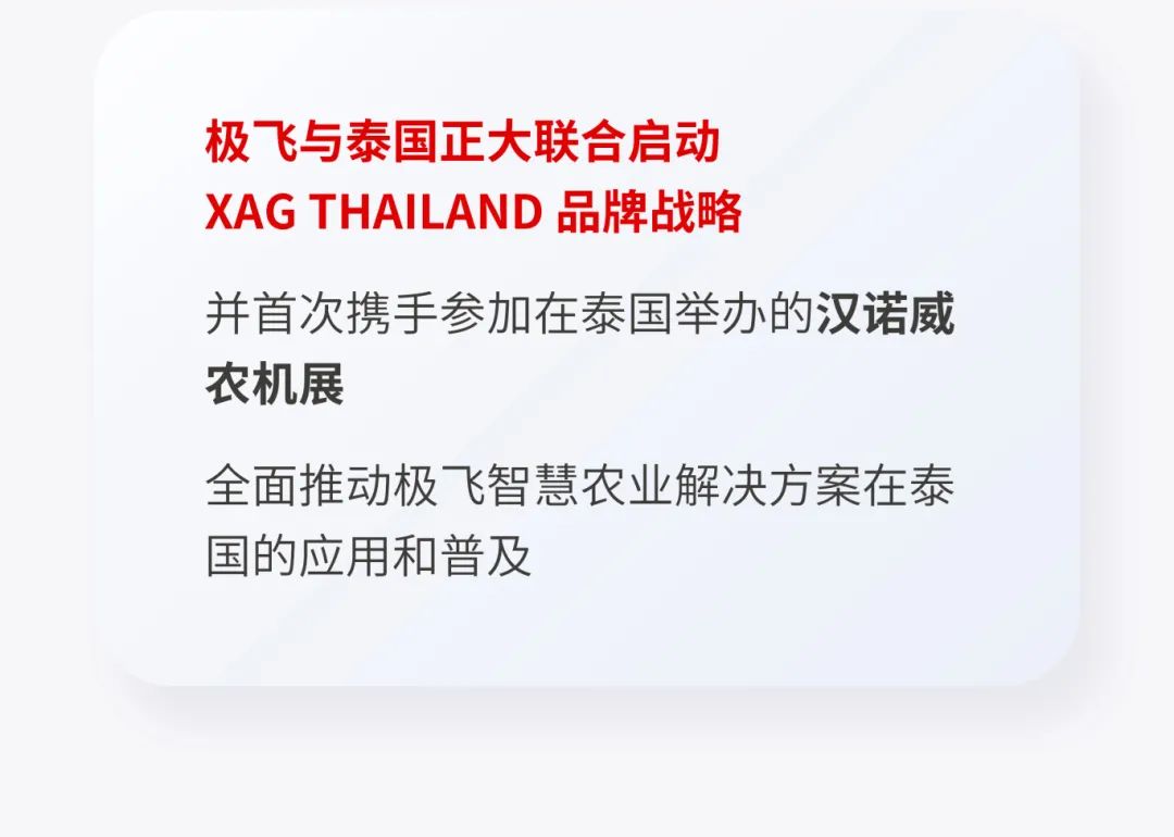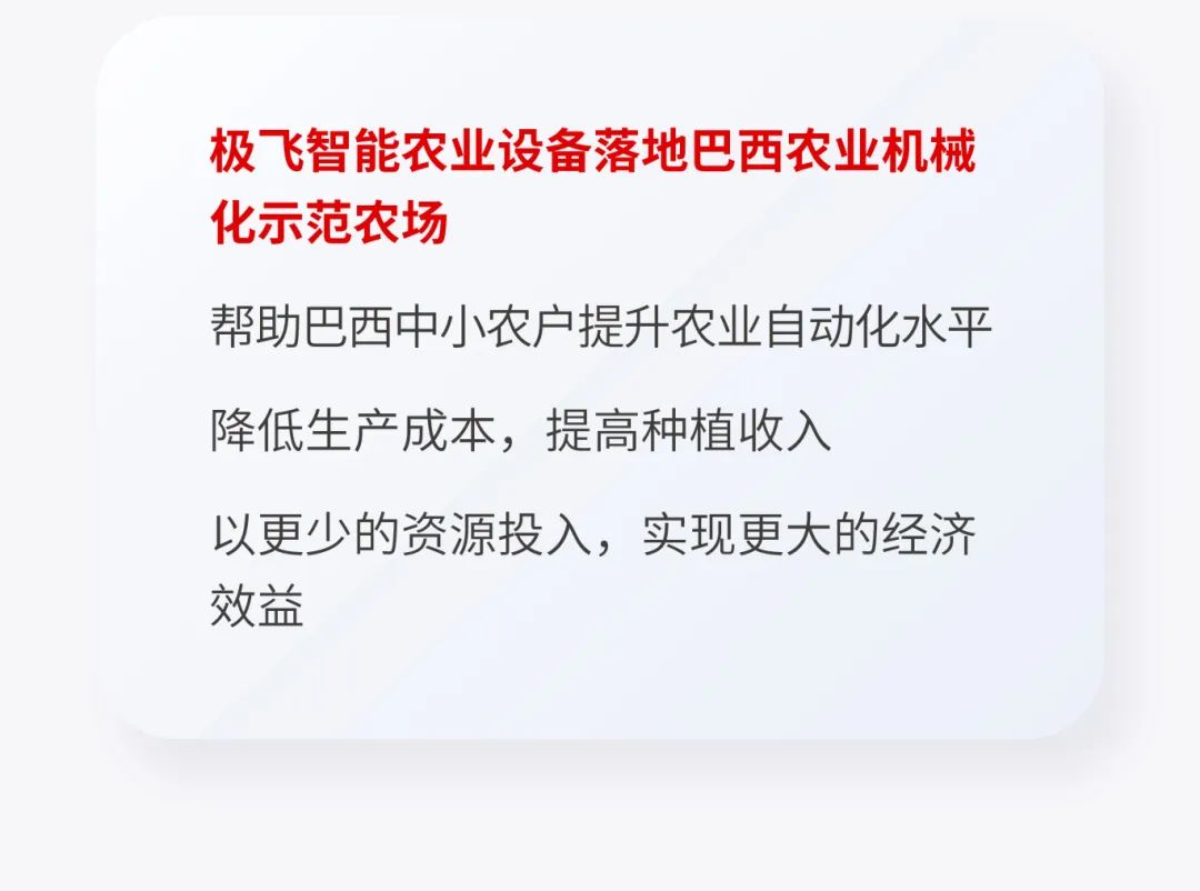 与此同时,极飞科技还通过对科研、开发、制造和传播渠道的整合,不断推动机器人、人工智能和新能源技术在全球农业领域的应用和普及。如今,极飞已经在 20 多个国家设立了试验基地,与中国农大、荷兰瓦赫宁根大学、英国哈伯亚当斯大学、悉尼大学等知名研究院校建立长期合作,通过科研探索、人才培养和公益合作,践行农业可持续发展理念。