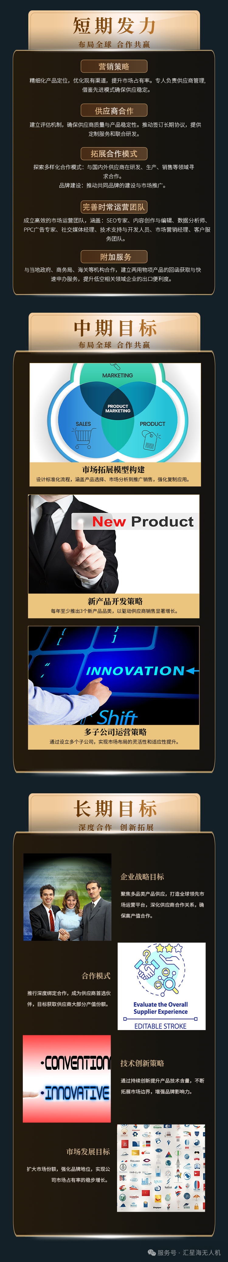 站在转型新起点,汇星海蓝图徐展。短期全力冲刺,争分夺秒集聚资源、打磨服务;中期稳健拓新,夯基固本、拓宽版图;长期领航奋进,向高科技与外贸共同进发。各阶段逐梦接力,共创辉煌未来。