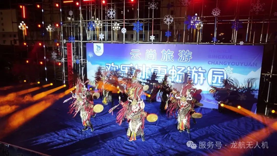开园表演现场,精彩绝伦的鼓乐说唱开场表演刹那间便点燃了全场的热烈气氛,整个现场瞬间沉浸在一片火热欢快、喜气洋洋的氛围之中。紧接着,前郭歌舞团带来了一场以蒙古族艺术表演为主的专业演出,一首首耳熟能详、脍炙人口的歌曲,一段段激情四溢、热情似火的舞蹈,伴随着悠扬婉转、余音绕梁的马头琴演奏,宛如来自广袤草原深处的深情呼唤,诉说着那古老而神秘的故事。而极具浓厚宗教和文化内涵的萨满表演更是令人眼前一亮,让市民与游客近距离领略到传统文化的博大精深与深邃神秘。随后,无人机表演秀与烟花秀惊艳登场,将整场开园活动推向了高潮,一时间,园区仿佛瞬间变身为一个活力四射的冰雪派对现场,动感的音乐、绚丽多彩的灯光、精彩绝伦的无人机表演、璀璨夺目的烟花与洁白无瑕的粉雪相互交融,市民与游客们在园区内尽情地释放着自己的热情,尽情地感受着冰雪的独特魅力与无尽欢乐。