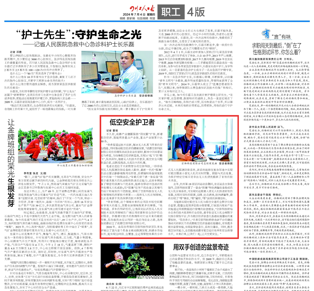 在四川天府新区,以科技创新为引领的新质生产力正加快“点燃”发展新引擎。不久前,成都产业建圈强链“朋友圈”扩容,新增低空经济、氢能2条重点产业链,重点产业链累计达30条。为抢滩低空经济新蓝海,实现从“起飞”到“腾飞”发展,专注“低空安全”领域的新区科技工作者——吴浩脱颖而出!
