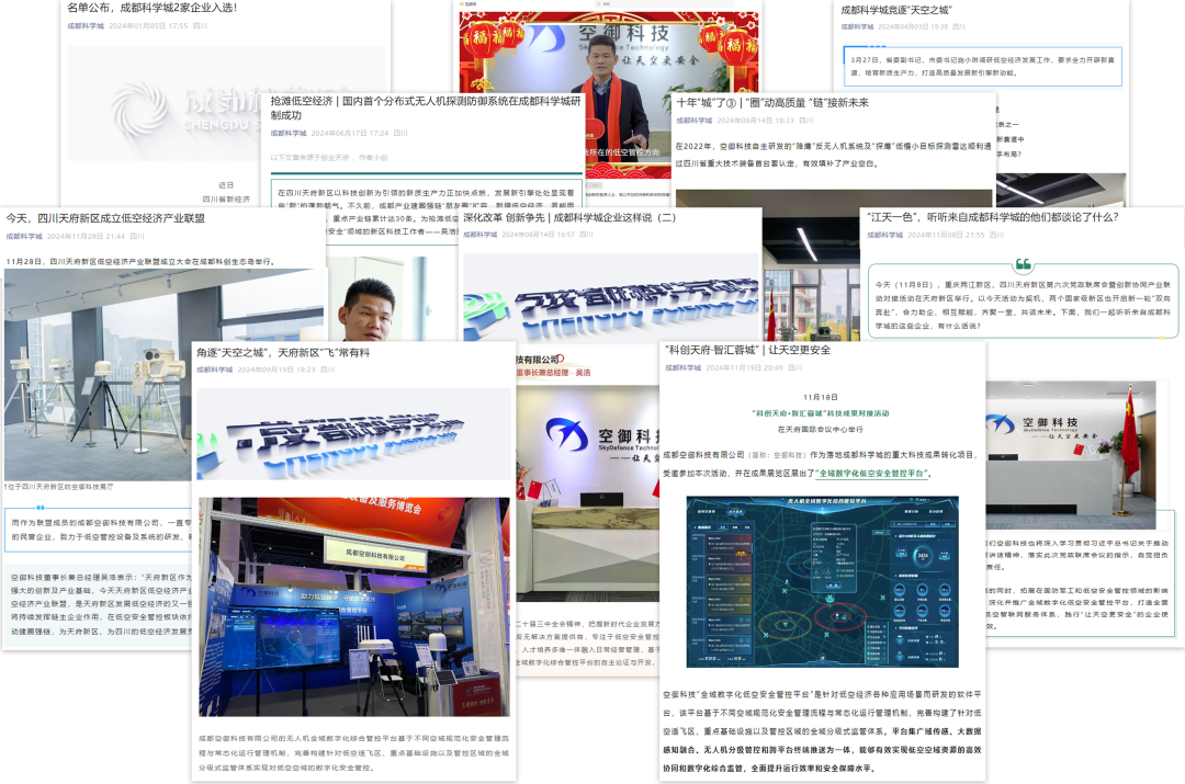 不仅要飞起来,还要飞得安全。这就要求无人机在低空飞行时,也拥有像地面交通一样的安全管控系统。来自成都的空御科技,就打造了全国首个分布式无人机探测防御系统,通过先进的雷达探测,光电识别,无线电频谱分析等技术,实现对低空飞行器的有效监控、识别和防御。