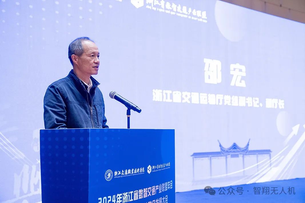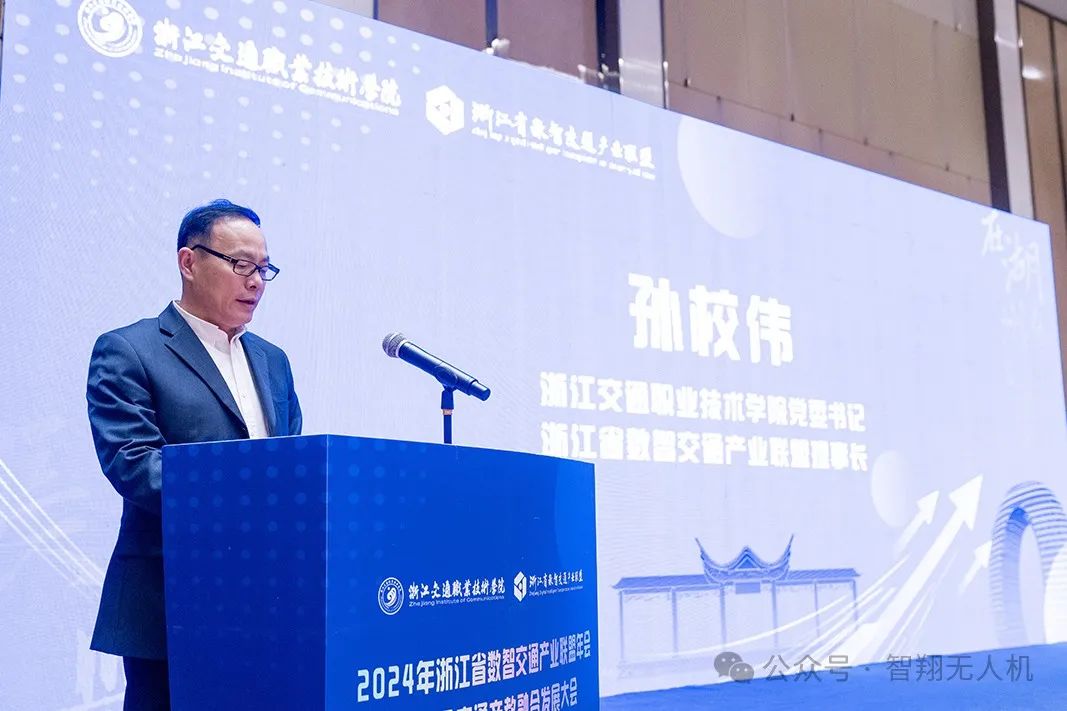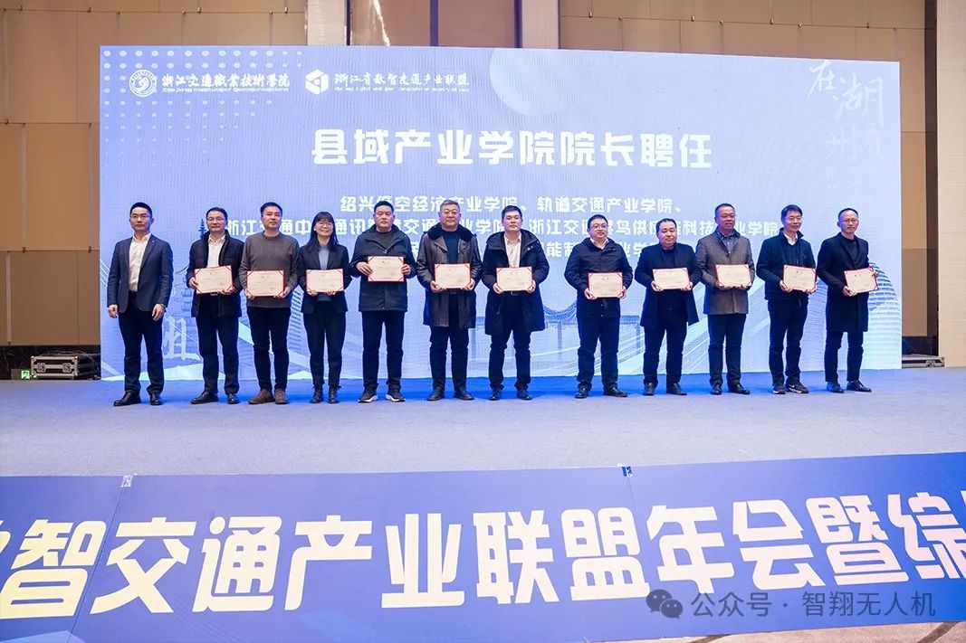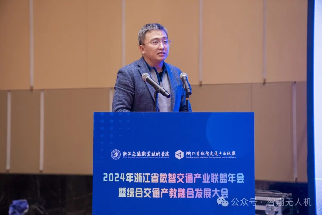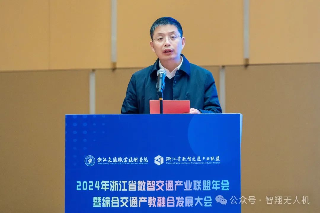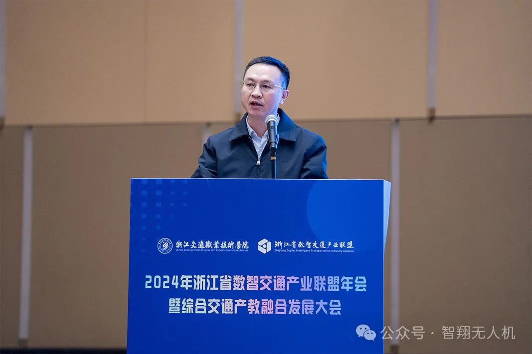 2025 年1月10日,浙江省数智交通产业联盟年会暨综合交通产教融合发展大会在湖州长兴盛大召开。此次大会由浙江省交通运输厅、浙江省经济和信息化厅指导,浙江交通职业技术学院主办,浙江省数智交通产业联盟、长兴县交通运输局承办,杭州智翔航空技术有限公司等作为协办单位。本次大会吸引了来自全省各地的政府代表、科研机构专家、龙头企业以及行业协会超过200名嘉宾参与。