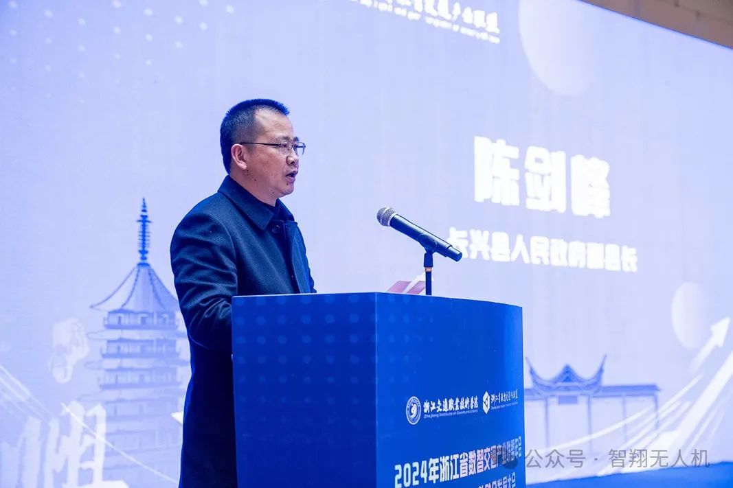 陈剑峰副县长向本次大会的领导嘉宾表示感谢,他表示长兴近年构建了“水陆空”立体化现代交通物流体系。未来,长兴将抢抓机遇,搭建“政校企、产创研”平台,为高校、企业提供更多合作机会。
