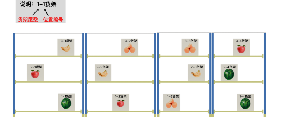 单排货架长5米(2 x 1.5m+2 x 1m)、宽 0.4米、高 2米,示意图如上图所示。