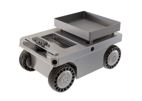 本次竞赛对地面端车模不设限制,参赛队可自行采购或者组装,参赛队可以根据自身的参赛策略,基于智能车进行加装设计,即需要基于下图所展示的基础底盘,可加装停机坪、各种传感器等结构件或电子件。车辆需为四轮驱动结构,至少需包含电源管理模块、主控模块、电池、摄像头模块、车辆需装备无人机起降平台结构;原装车辆的最小部件单元禁止进行任何形式的改装,如电池、主控器、电机等。改装后,整机尺寸不超过长 520mm,宽450mm,高330mm。