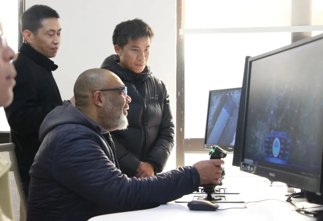 随后,时代星光为客人们进行了无人机飞行及远程操控平台实战演示。在战狼S200空天地一体化AI指控系统的控制中心内,工作人员通过时光云无人机管控平台对部署在百公里外的无人机及智能机场进行实时远程操控。当了解到通过该平台可对上千架无人机进行远程操控,并可实现无人机自动充电、自动换电、规划航线自主飞行、自主执行飞行任务等功能时,客商们不禁赞道“amazing!”,并纷纷亲自上手体验平台操控。