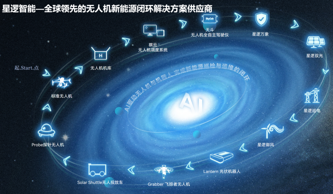 当前,星逻智能已经用无人机充电机库、无人机全自主驾驶仪、巡检软件和智能机器人在光伏、电网、风机、安防等领域构建起空中智能化巡检运维体系,实现无人机起飞降落、无人机执飞、数据采集、缺陷分析识别等方面的无人化、自动化、智能化,为用户提供多元化的解决方案。