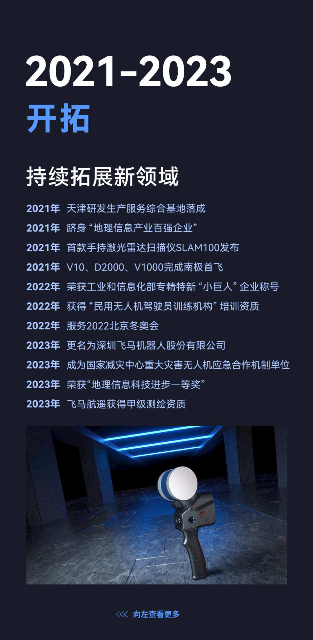 十年,飞马机器人持续跃进,面向低空经济主战场,品牌定位从“无人机软硬件一体化解决方案”向“一站式空间数据解决方案”升级;产品链条不断拓展完善,产品应用日趋广泛,从航测细分领域向泛测绘地理信息领域持续发展,打造了特色鲜明的广域复杂环境可用好用的工业无人机研发、制造、业务应用的全价值产品链条,高效满足各行业的空间数据需求,推动了国内无人机遥感与测绘地理信息领域技术革新,进一步提升了国产航测遥感无人机的广域应用水平与保障能力;产品矩阵坚持空地一体化发展,坚持软硬件自主创新与国产化导向,从智能航测遥感无人机头部厂商向3D移动测量领军厂商持续发展;持续深耕服务国内客户,积极出海开拓国际客户,业绩成长健康良好,企业经营基本面持续向好。
