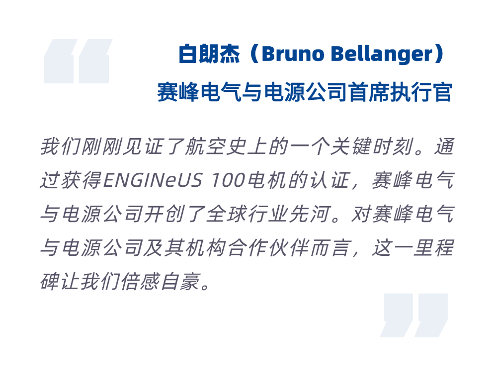 赛峰电气与电源公司庆祝全球首个电机认证:ENGINeUS 100电机获得欧洲航空安全局(以下简称“EASA”)认证 —— 这是首款获得认证的用于新型空中交通的电机。