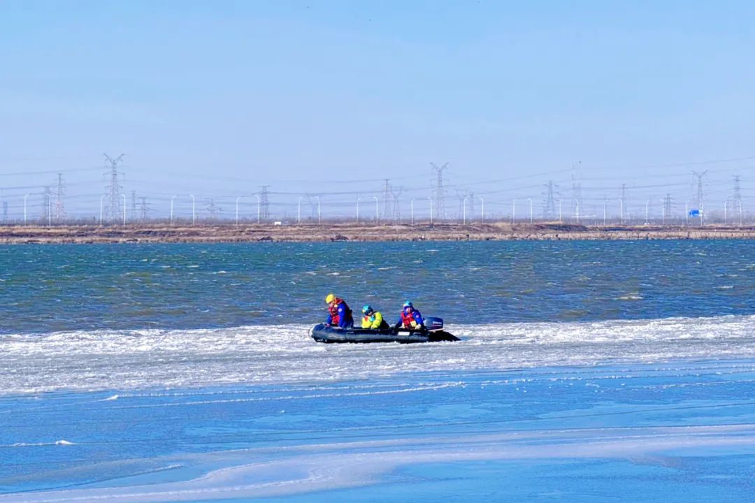 事发坑塘面积达到700余亩,坑塘周边有排水沟、芦苇荡、废弃房屋等,地形非常复杂,且部分塘面已经结冰,给搜救工作带来极大困难。现场救援力量调集挖掘机在岸边进行破冰作业,调集水面冲锋舟、冰面救援用香蕉船、声纳系统等设备辅助搜救,蛙人乘船对可疑点位进行重点排查,但是恶劣的气象条件和现场的复杂环境对搜救效率造成影响。