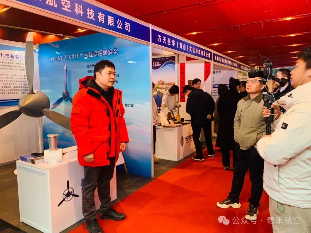 活动期间,羲禾航空创始人刘传超在展位前接受采访。