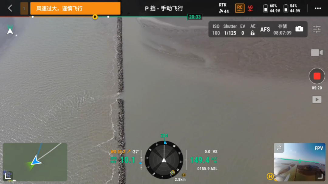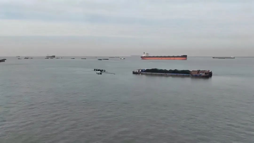 △无人机穿梭在长江航道上