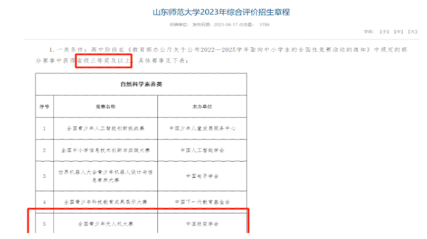 (教育部白名单《全国青少年无人机大赛》获得多个大学院校的认可,在招生官网页面可以查询到相关的赛事要求。)