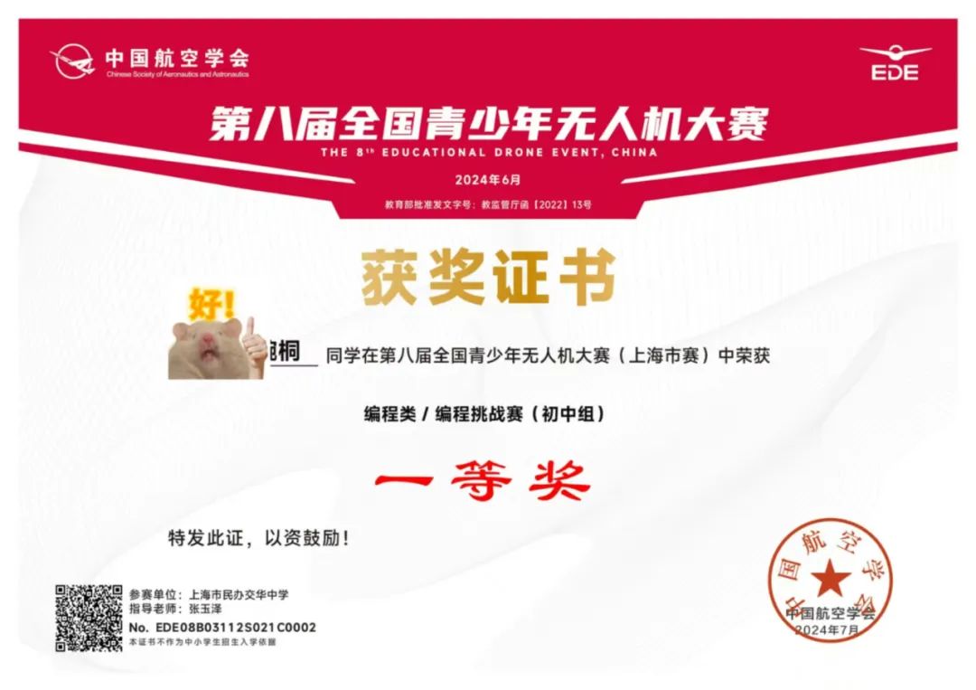 曾带领十二名学生晋级《第七届全国青少年无人机大赛》(上海赛区)荣获一等奖2名,二等奖3名,三等奖7名。