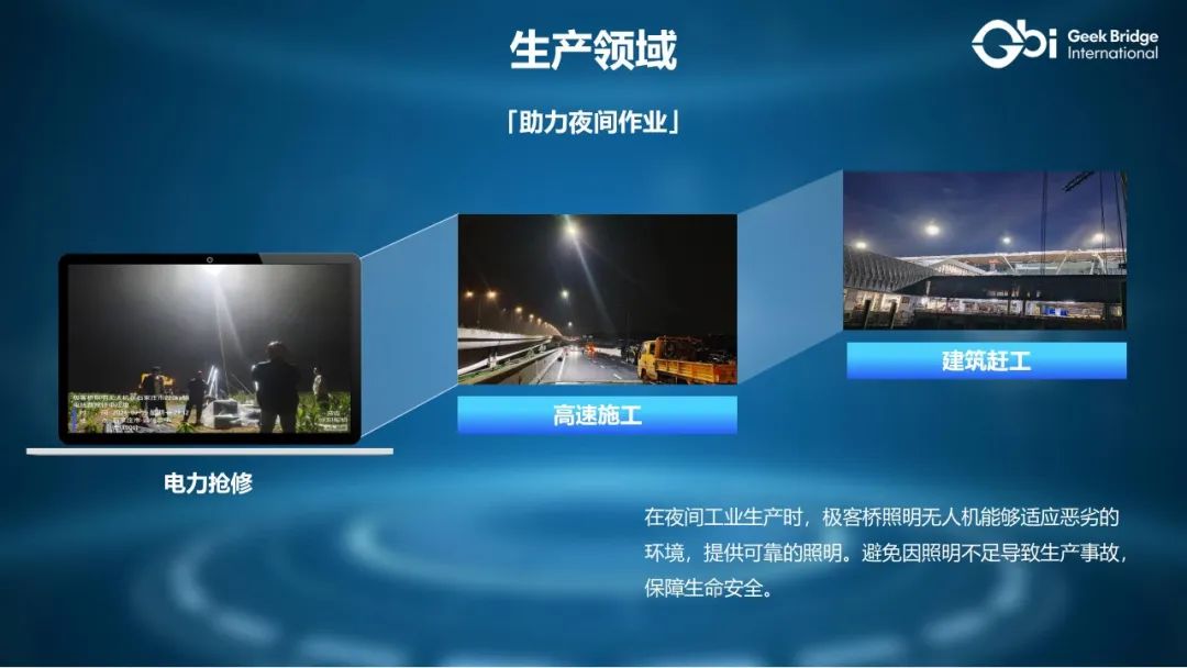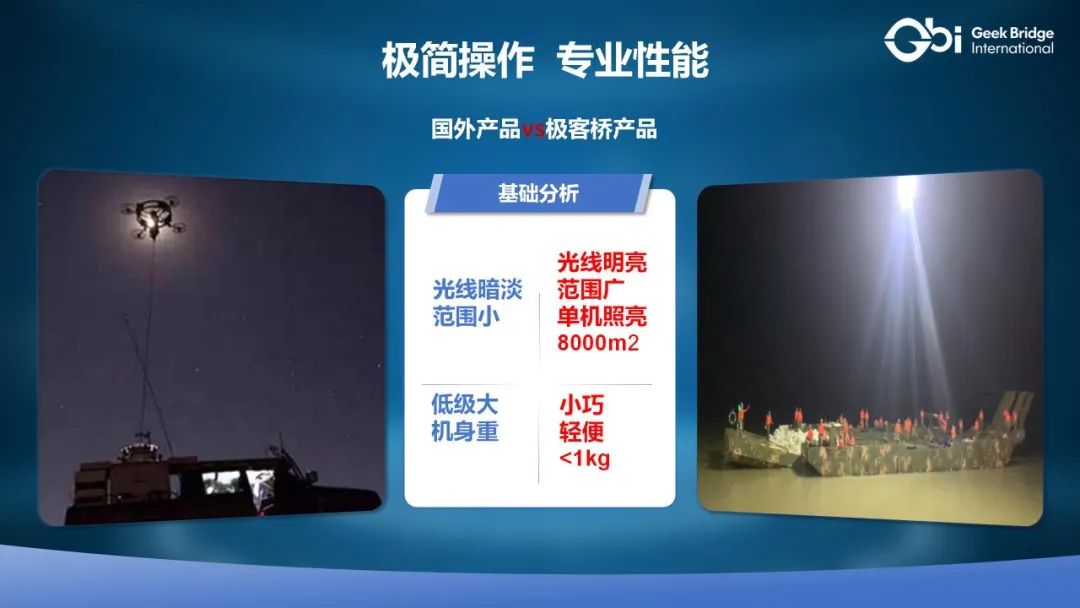 这一技术突破不仅填补了国内高端照明无人机的空白,更是以“性能领航”的姿态勇敢地对标国际品牌。极客桥凭借着卓越的品质和先进的技术,成功实现了国产替代,为中国无人机行业赢得了国际声誉。