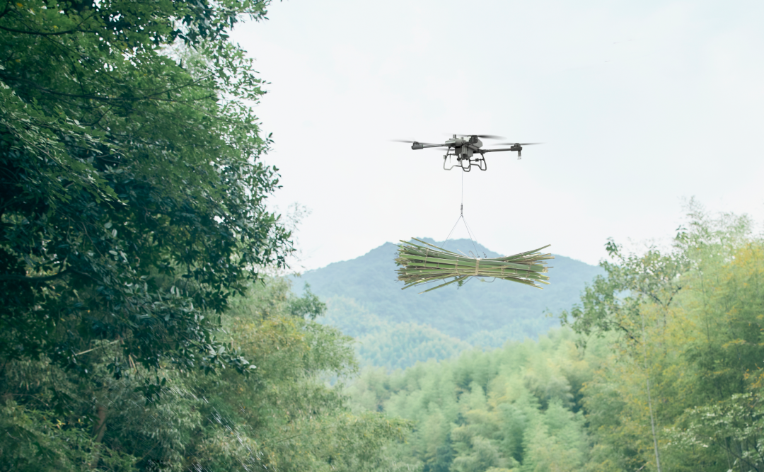 在四川的深山中,每年竹农都要为运输竹材发愁。竹子的采伐和运输仍主要依赖人力,成本高且效率低;部分因生态保护不适合修路的地区,竹子更是难以运出。联合飞机发挥Q100农业无人机和大载重无人机的运载优势,解决了竹子运输难题,单日运量提升3倍,不仅提升了农副产品转运效率,还带动村民增收。