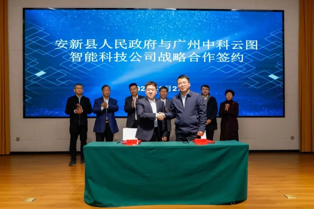 随后,安新县委副书记、县长李国向与潘屹峰分别代表安新县人民政府、广州中科云图智能科技有限公司,签订了战略合作协议。
