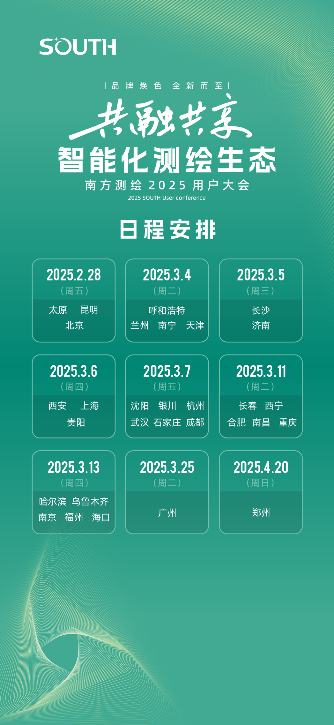 正如本届用户大会的主题所述,南方测绘将继续秉持 “共融共享” 的发展理念,不断推动测绘地理信息技术的创新与应用,与行业同仁携手共进,共同开创智能化测绘生态的未来,分享智能化测绘发展成果。后续,南方测绘 2025 用户大会还将在全国多个城市陆续开展,敬请期待。