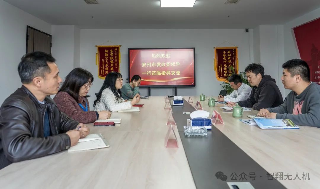 2月26日下午,泉州市发改委副主任、党组成员李程,重点办干部叶盛斌,中航金城吴英挺一行莅临智翔航空技术有限公司(以下简称“智翔航空”)调研交流。在董事长程苏仙的陪同下,调研组深入考察公司技术成果,并围绕低空经济产业赋能、无人机与现代农业融合等议题展开座谈交流。