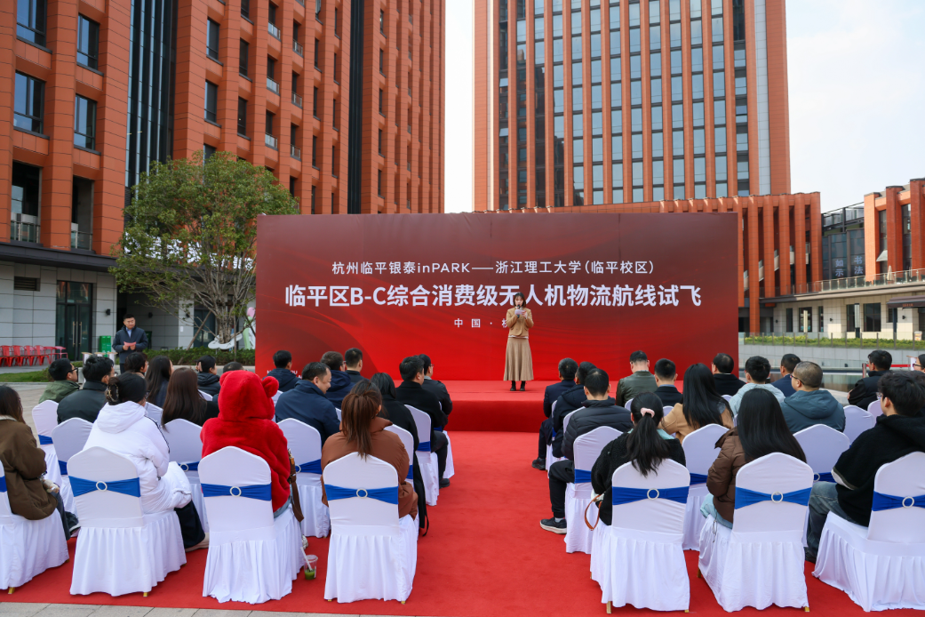 据了解,此条低空物流综合航线的开通,是临平新城基于浙江理工大学临平校区8000名师生“距离商圈远、外卖选择少”的难题,结合临平银泰inPARK新商业体的发展诉求,在杭州市低空专班、杭州低空产业发展有限公司、临平区低空专班指导下的一次创新实践。