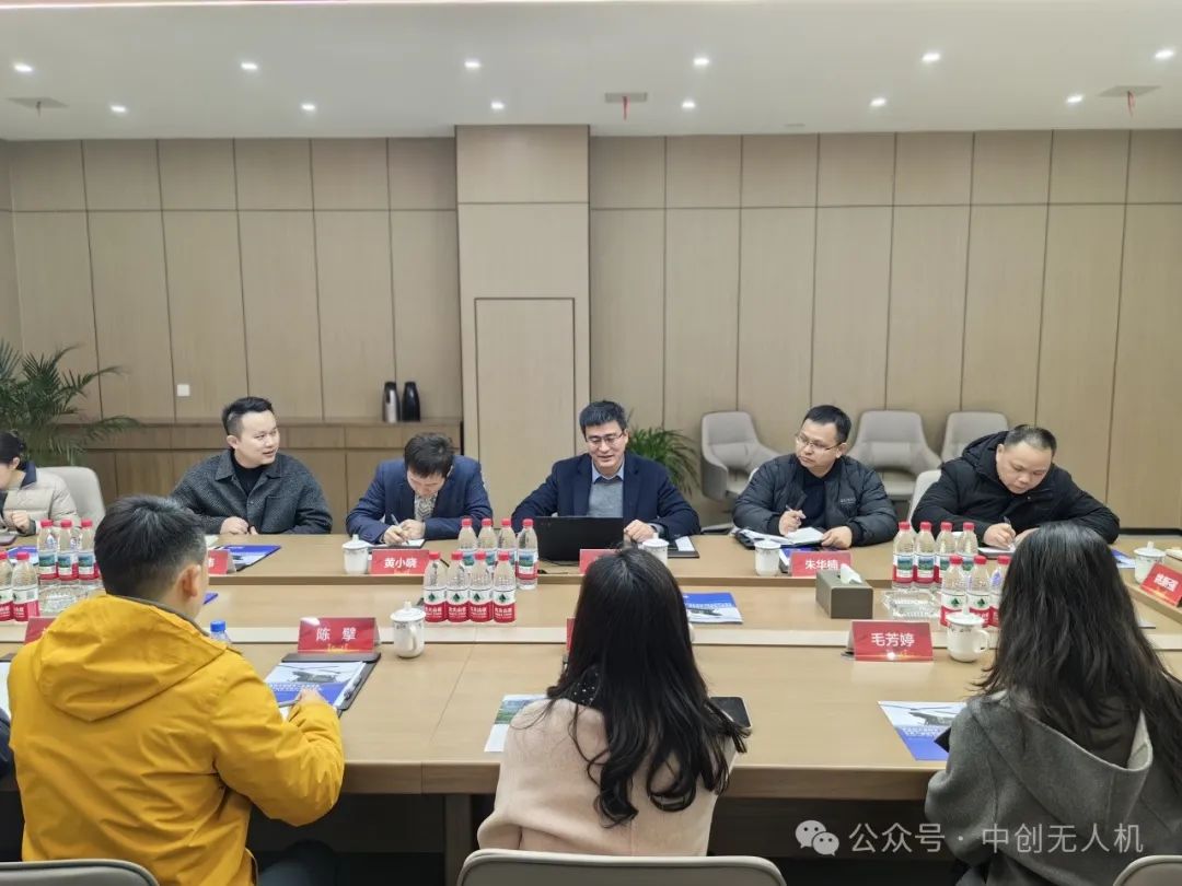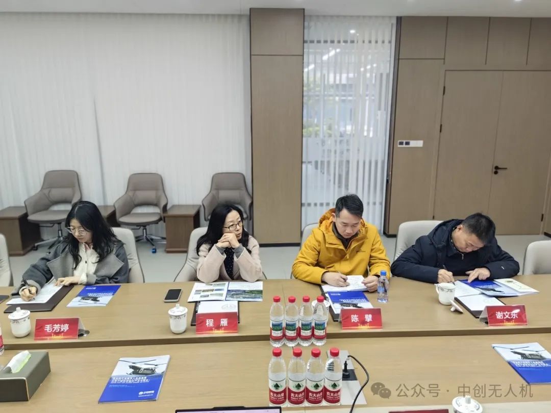 省商务厅调研团队一行与中创航空总经理黄海以及相关业务骨干进行了深入交流。座谈会上,中创航空说明了当前进出口业务中两用物项的申请过程中遇到的困难和问题。