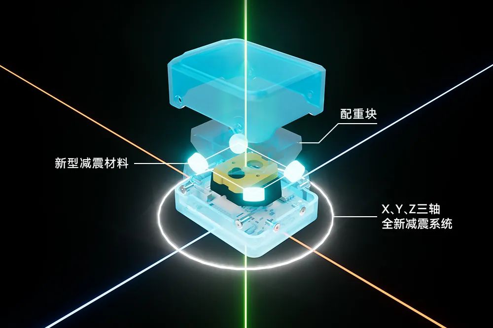 采用低硬度、高回弹、耐久性强的新型减震材料,在内部形成一个特殊的减震系统,采用CNC五轴加工的倾斜四角支撑件设计,保证了X、Y、Z轴三个方向一致的减震性能,可以滤除设备运行过程中产生的高频震动,起到缓冲和保护作用。良好的减震降噪性能更好地降低噪音对读数的干扰,提升传感器采集数据的准确性。